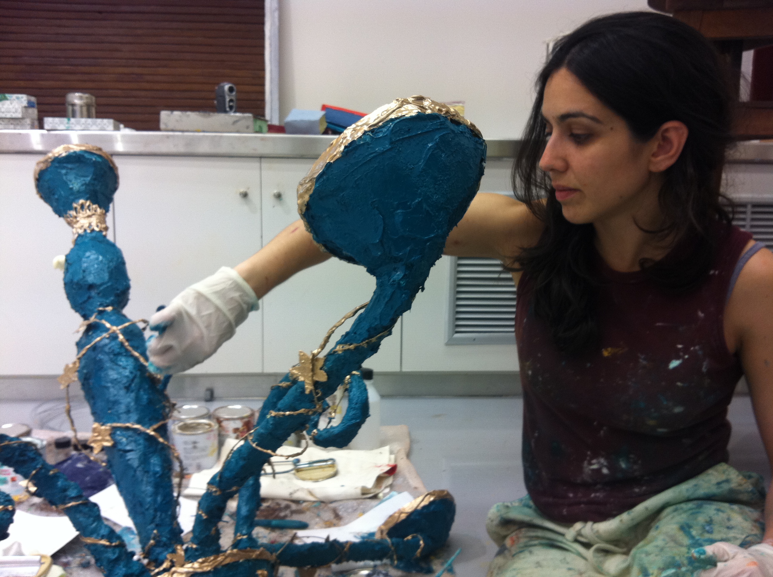 In 2002 she entered the Athens School of Fine Arts (ASKT) and graduated in 2008 when she was awarded a degree in painting with honors. Her main thesis was in visual arts in her own conceptualized art form “Sculpture of oil Colors”. She continued her postgraduate studies at the same school on a fellowship from the Institute of State Scholarships where she graduted with honors. From 2007 to 2015 she worked with the recognized sculptor Takis, as his student and as his private assistant. Since her early student years she participated in various group exhibitions in Europe. In 2006, while attending the Art School of the University Willem de Kooning Academie, under a scholarship from the Erasmus-Socrates program, her matrix animation work with the theme “Narration of life in the Universe” was exhibited on the façade of a downtown office Kpn building in Rotterdam which was desinged by the architect Renzo Piano. This animation among other similar projects is still exhibited to date. In 2010, she was awarded a prize from an exhibition-contest in Athens sponsored by Nestle on the theme “The true friendship concept”.